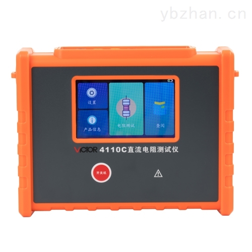 VICTOR 4110C直流电阻测试仪 由主机、监控软件、测试线、通讯线等组成。主机手持便携式设计便于现场应用、具有充电功能无需现场找电、全彩大屏LCD显示,一目了然,触屏操作方便易用,端口防过载功能。大容量存储500组数据,电阻测量范围:10.0uΩ-50.00KΩ,测量精度:±0.2%FS±10dgt。上位机软件具有历史数据读取、查阅、保存、报表等功能。